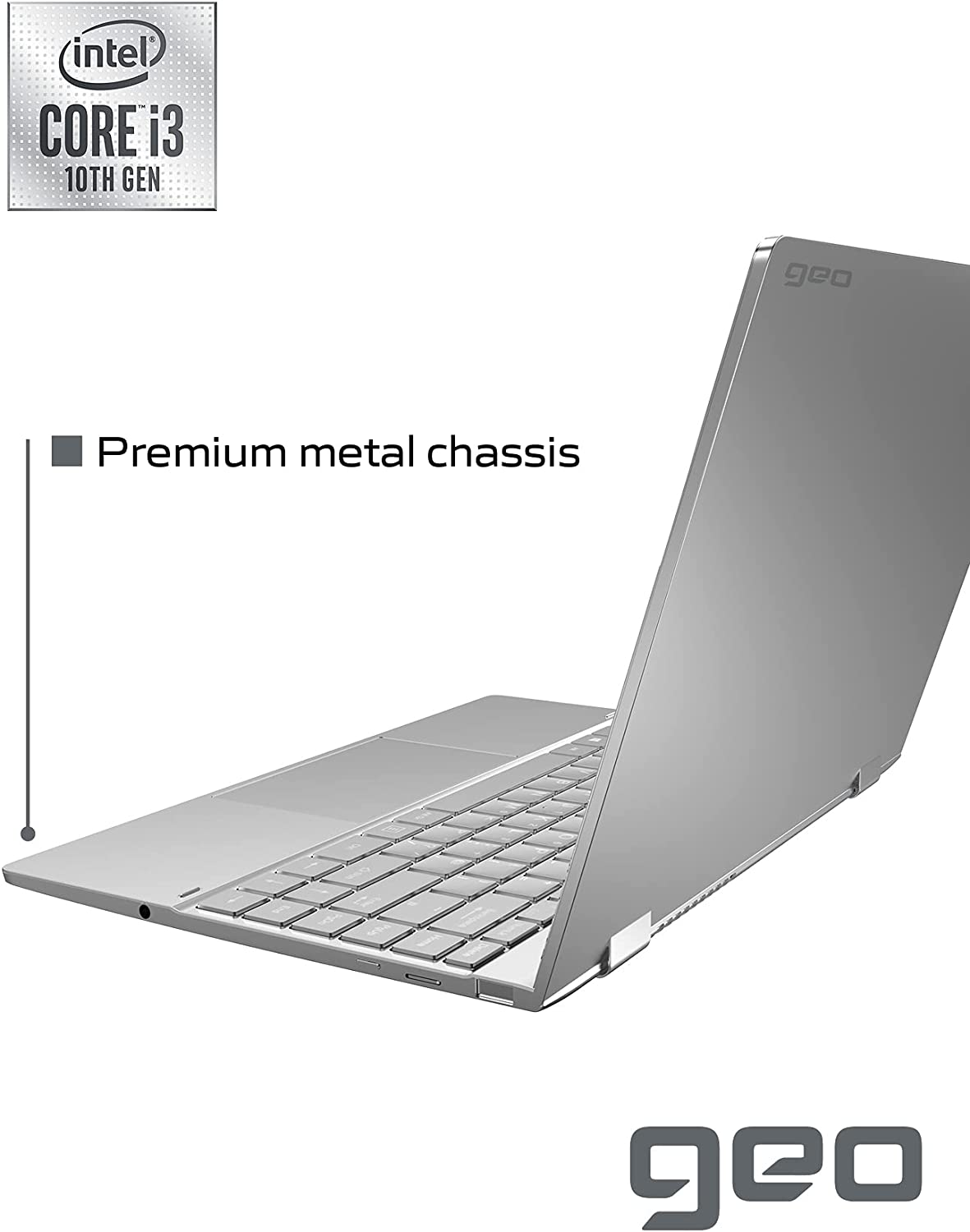 GeoFlex 340 is a 14.1" convertible metal laptop with touchscreen, offering versatility, style and performance in one slim and lightweight package.